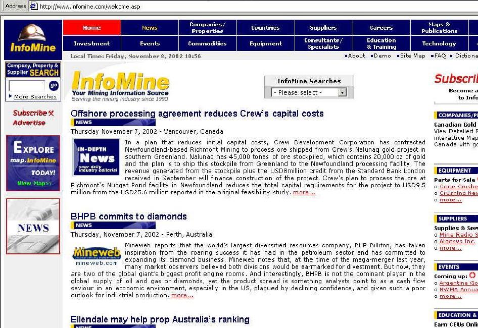 Infomine , which is based on Down Town Vancouver, is one of the famousest mine consulting companies in the world. The website shows information on mine companies around the world. (Keywords ASP, VB, SQLServer)